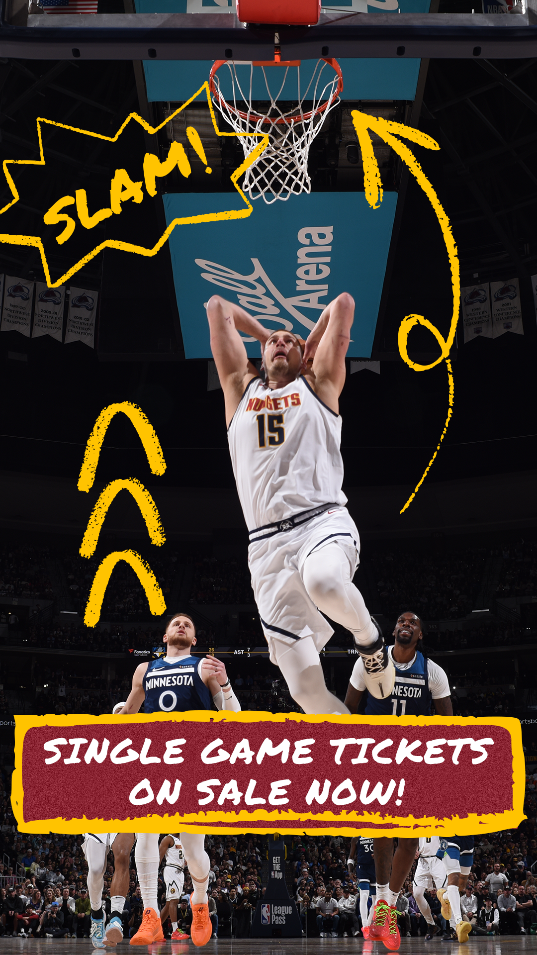 IN MY THIRD SEASON WORKING FOR THE DENVER NUGGETS, I DESIGNED THE SEASON LONG BRAND IDENTITY AND LOOK & FEEL FOR A TEAM THAT IS CHASING ITS RIGHTFUL SPOT AS SEASON CHAMPIONS. AFTER SHAKING THINGS UP WITH A NEW COACH AND REWRITING THE ROSTER, THIS TEAM HAS AN ENERGETIC AND FUN FEELING.